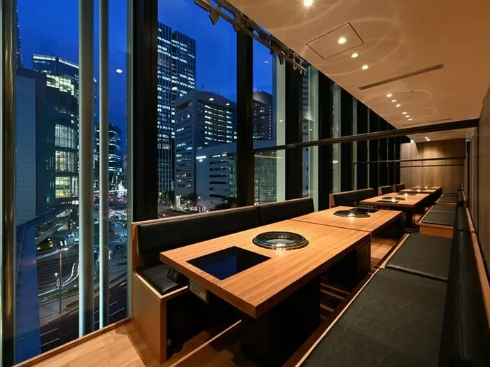 大阪駅から徒歩1分のKITTE大阪内にある【飛騨牛一頭家馬喰一代 KITTE大阪】は、岐阜県で1957年創業の飛騨牛専門店【馬喰一代】の大阪初店舗。大阪の街並みが一望できる店内は、シックで落ち着いた雰囲気でコーディネートされ、大人のデートにふさわしい空間です。2人から利用できる個室もあり、上質なくつろぎの時間を演出してくれます。