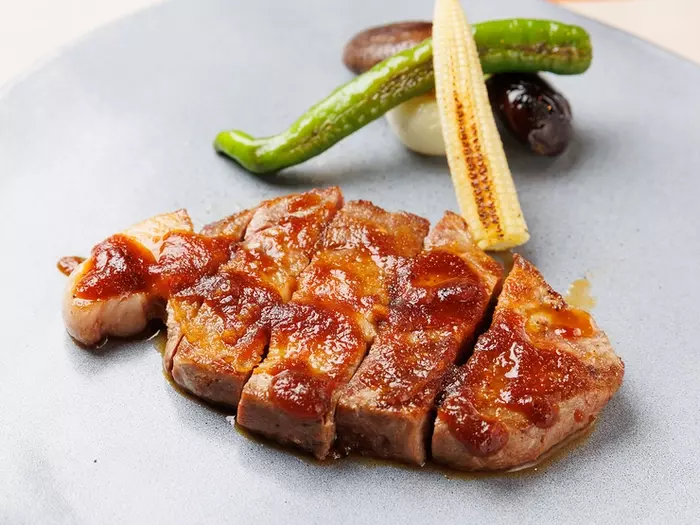 【鉄板ビストロENcounter】は、蓮池町通駅から徒歩5分。カウンター席6席のみの空間で、カジュアルに鉄板焼を満喫できるお店です。オススメは、鉄板焼でアレンジした個性ある鰹のタタキと、高知県産「ゆず豚」ロースの生姜焼き。少し贅沢をしたい日に最適な、厳選黒毛和牛ステーキがメインのコースも用意されています。