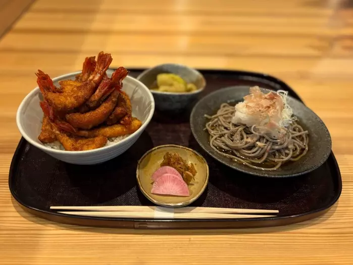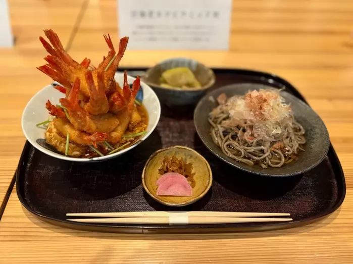 「2025年美食都市アワード」の受賞を記念し、三国港の「甘えび」をふんだんに使用した『甘海老てんこ盛り丼』をはじめ、期間限定メニュー『甘海老カツピラミッド丼』や『甘海老カレー』などが、東京・表参道の【ふくい南青山291】および【ふくい、望洋楼 青山店】(同敷地内)にて提供されています。『甘海老カツピラミッド丼(越前おろし蕎麦付)』 3,300円