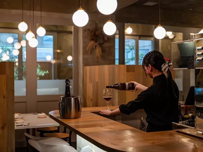 専属のシニアソムリエが選び抜いたワインを50種以上オンリスト。フランス産の王道・スタンダードワインを中心に、クラシックフレンチの味わいをより深めるワインが充実しています。店内は、真鍮の意匠を施したモダンな大人の空間。池袋駅のほど近くにありながら、街の喧騒を忘れさせる、どこか隠れ家感のある佇まいも魅力です。