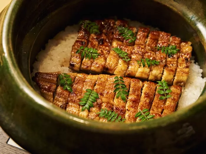 焼きたての鰻をのせ、タレをかけて暫く蒸らしてからいただく『土鍋まぶし』
