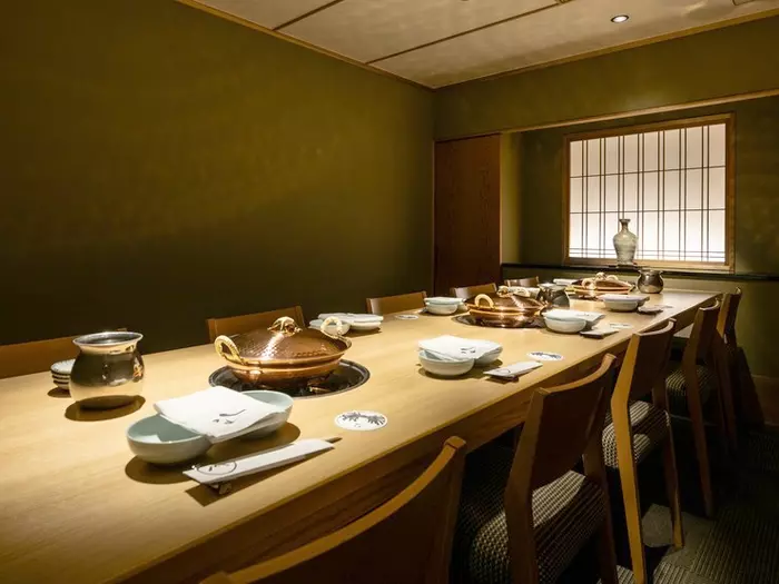 六本木の中心地にありながら、ビルのB1Fに構えたお店は隠れ家のような落ち着いた雰囲気。江戸情緒を感じさせる黒板塀や、現代的にアレンジされた坪庭、回廊など、和の空間が広がっています。個室は大小9つあり、海外からのゲストもくつろげるように靴を履いたまま利用可能。最大20名まで対応できる大広間もあり、接待や宴会などにも使えます。