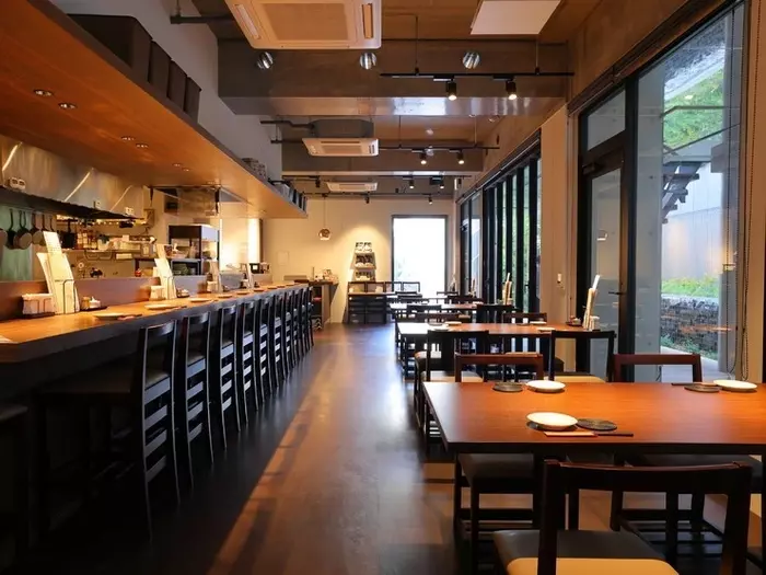 大きなガラス窓が印象的でオープンな雰囲気の店内