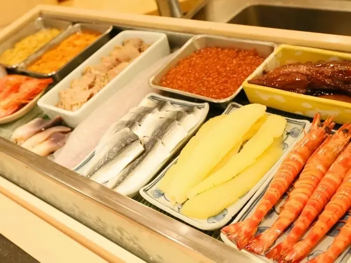 札幌駅から直結しているため、空港や各地からのアクセスがとても良い【すし善大丸店】。高い職人技はそのままに、本物の寿司をより身近に味わうことができるお店です。カウンターにあるネタケースには、北海道産の豊富な鮮魚を中心に、日本の旬を取り入れた秀逸な食材がずらりと並んでいます。