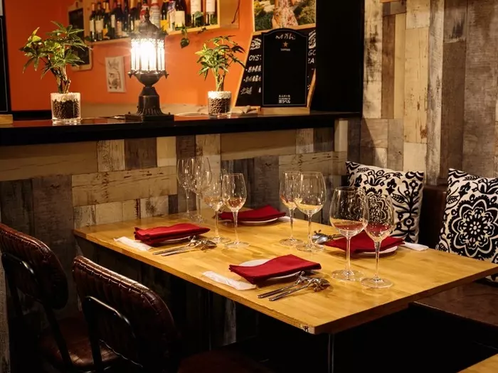 扉を開けると広がるのは、隠れ家風のオシャレなダイニング。落ち着いた雰囲気の店内には、R&Bの心地よいBGMが流れています。アルコール類はもちろんのこと、九州果実のノンアルスカッシュも豊富。福岡のあまおう、宮崎の日向夏など、各県を代表する果物を使ったドリンクを揃えています。