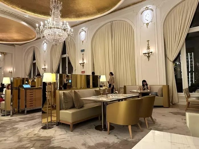 ここではホテルの伝統的な料理を現代風にしたものを中心に、アラカルトでオーダーが可能です。天井が高く奥にシャンパン・バーがあって、優雅な雰囲気です。