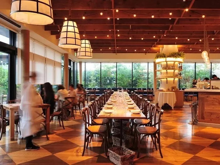 緑に囲まれたオシャレな店【ROSEMARY’STOKYO】は、NY・ウェストビレッジの人気店【ROSEMARY’S】の雰囲気をそのまま再現。イタリア・トスカーナ地方の家庭料理をNY風にアレンジした料理は、季節の食材をふんだんに使用しています。モチモチ食感が楽しいパスタ『菜の花とサルシッチャのオレキエッテ』など、NY本店のレシピが忠実に再現されています。