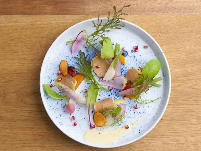『酒かすで漬けたフォアグラと農園野菜のサラダ仕立て』