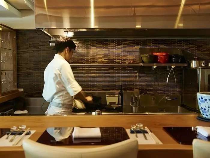 オープンキッチンで提供する、和仏融合の新感覚料理