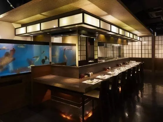生け簀を完備!活きたイカの姿造りをカウンターで楽しむ海鮮居酒屋