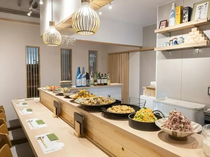 女将が心を込めてつくるおばんざいが魅力の【酒とおばんざい雨ニモヌレズ】は、カウンター11席のみの隠れ家的な空間です。