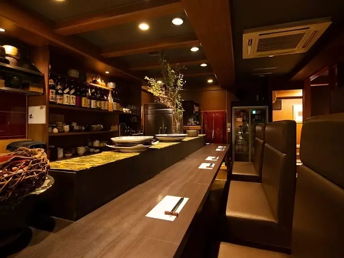 オープンキッチンを取り囲むゆったりとしたカウンター席はデートにもオススメ。また、少人数の飲み会に最適なテーブル席、個室も用意があります。日本酒や各種ワインも取り揃えているので、お酒好きの方も満足できそうです。