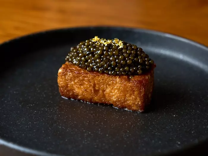 記憶に焼き付くスリオラのスペシャリテ『軽く燻したキャビアとトリハ』