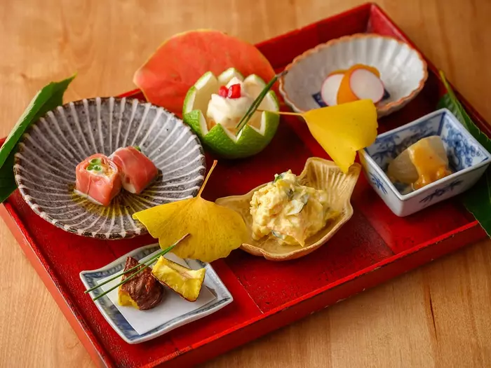 素材の持ち味を丁寧に引き出した料理が魅力の、知る人ぞ知る和食割烹です。中でも旬の食材を多彩な調理法で仕上げた少量多皿の『季節のおまかせコース』が人気。アラカルトでは“とりあえず”の一皿に懐石料理で味わうような本格八寸を頼むこともできます。2名から利用可能な個室もあり、接待や会食など様々なシーンに寄り添ってくれます。