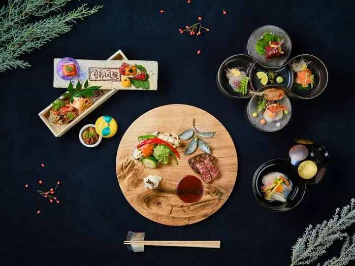 旅先の楽しみのひとつが食事です。「はつはな」では、伝統の日本料理に洋の要素を取り入れたモダン懐石を提供。地元神奈川の食材をはじめ、近隣県から厳選した季節の食材も多く取り入れています。肉料理には、神奈川県南足柄の地で唯一放牧飼育され、雄大な箱根丹沢山麓のおいしい水と、独自で研究された上質な飼料で丹精に飼育された「相州牛」を。魚料理は、神奈川の近隣港からのお魚や、静岡県の「金太郎マス」など近隣県からの食材を。富士レタスなどの野菜もふんだんにいただけます。また、ソムリエによるアルコールペアリングやノンアルコールペアリングも充実。