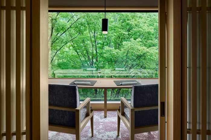 夕食と朝食をいただくダイニング【はなゑみ】は、全卓個室仕様で31室を完備。食事の時間もプライベート感を大切に考え、料亭のような雰囲気です。セパレートを外すと最大10名様まで一緒に食事を囲むことができますので、ご家族やご友人のお祝い事の旅などにもぴったり。子連れだとラグジュアリーホテルへの敷居が高く感じられてしまうかもしれませんが、プライベートを重視した「はつはな」では、小さな子どもと一緒でも安心して過ごすことができます。ちなみに、名前の「はなゑみ(花笑)」とは、万葉集に使われている言葉で、会話が弾み、元気になる場所、笑顔になる場所という意味に由来。