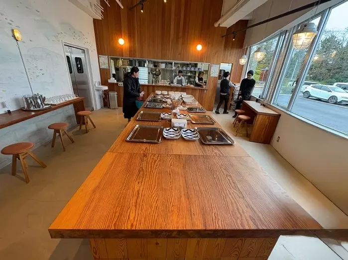 大きな木のテーブルと開放的な窓が心地よい、【みなとキッチン】のキッチンスタジオ
