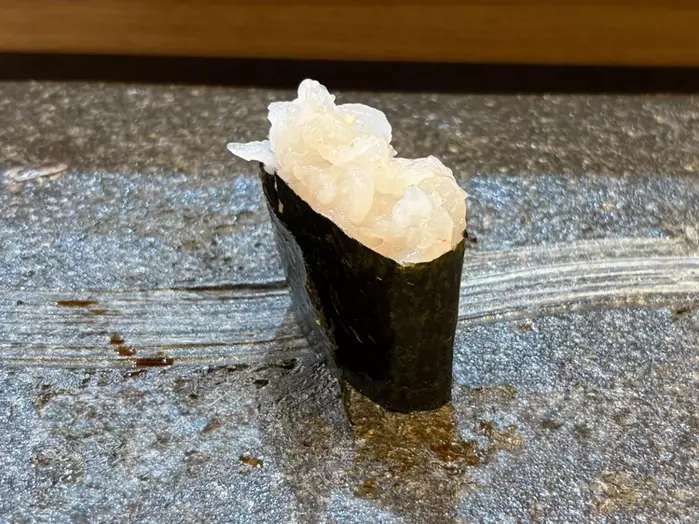 コース全体を通し、富山の豊かな海の幸を余すことなく堪能できました。前菜の白エビやバイ貝、ホタルイカに始まり、刺身は氷見や滑川の魚が主役。香箱ガニや紅ズワイの茶わん蒸し、げんげの天ぷらなど温菜も印象的で、握りは平目、アオリイカ、炙りムツ、氷見のブリが続きます。どれも鮮度と丁寧な仕事が際立ち、富山の地酒と合わせれば、旅の締めに相応しい満足感に包まれましたーー。