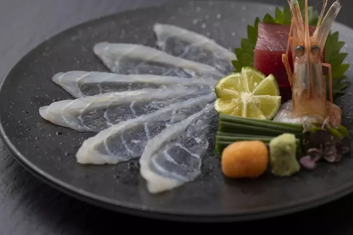 一皿ごとに四季を映し出す【個室会席 北大路 赤坂茶寮】のお料理は、2ヶ月毎に内容が変わっていくとのこと。取材をした日の冬の魅力を詰めたコースでは、板前の腕を感じる見事なふぐの刺身や唐揚げ、またフルアテンドで提供される高品質な黒毛和牛のすき焼きなど、贅を尽くした料理の数々が並びました。