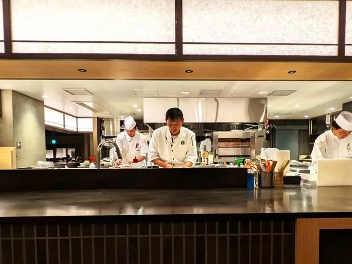 板前さんの手仕事を間近に感じることができるオープンキッチン
