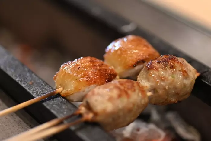 一つ一つ丁寧に焼き上げる焼鳥。日本三大地鶏の「比内地鶏」は濃厚な味わいと、適度な歯ごたえが特徴