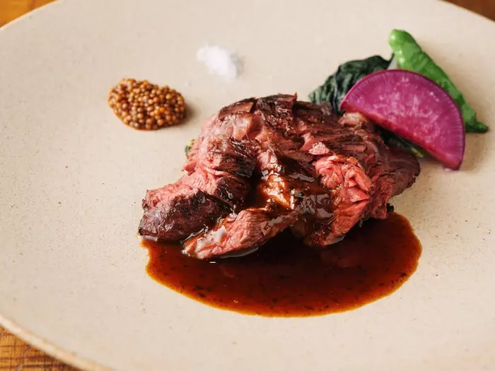 溶岩石でじっくりと焼き上げた『牛ハラミのグリル(150g)青胡椒のガストリックソース』