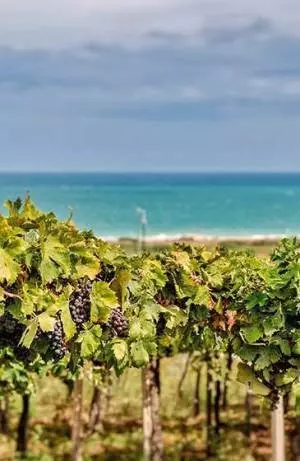 海を望む「Cantine Torri」社のモンテプルチアーノ種のぶどう畑