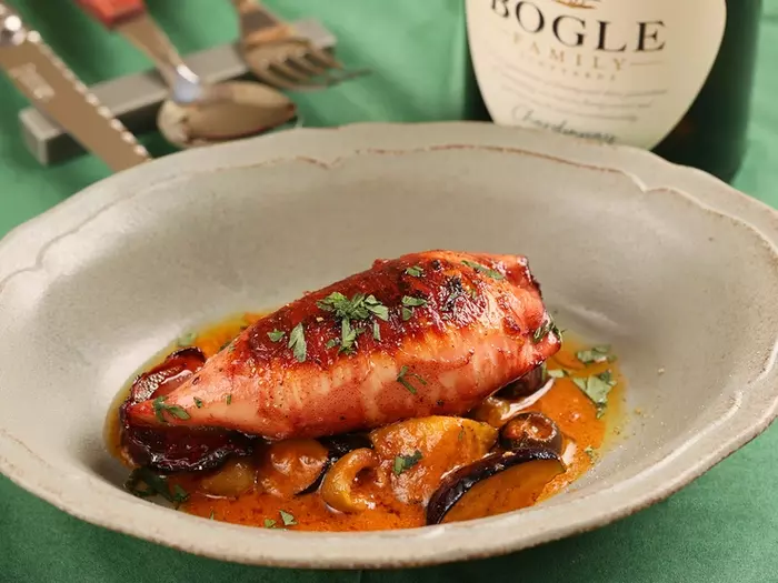 イタリアの定番料理でもあるリピエノを独自に昇華させた『真イカのリピエノイカゴロのソース』。新鮮な真イカを使用したシェフのスペシャリテです