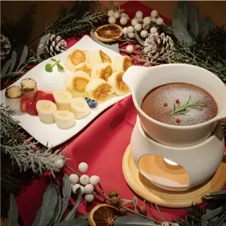 難波駅から徒歩5分の場所にある【CAFE ANNON なんば本店】は、ふんわり食感のスフレパンケーキが人気のカフェです。中でも冬シーズンにオススメなのは、期間限定の『チョコフォンデュセット』。温かくとろけるチョコレートに、ふわふわスフレのミニパンケーキと色とりどりのフルーツを盛り合わせて提供。