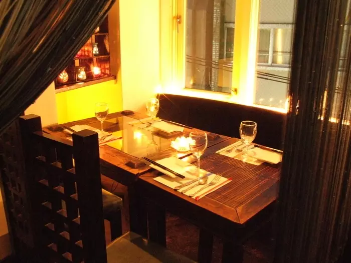 虎屋横町が一望できる大きな窓、オシャレなインテリア、ムードある照明などが非日常感を演出。カジュアルな雰囲気が心地よいカウンター席に加え、ゆったり寛げる半個室タイプのテーブル席もデートにオススメです。アルコールメニューも豊富で、カクテルはオリジナルレシピを含め350種以上。サプライズサービスにも対応してもらえます。