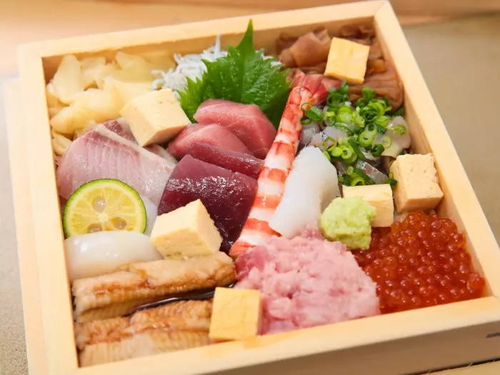 来宮駅から徒歩10分のホテル「ふふ熱海 木の間の月」内にある【鮨割烹海の悠波】は、熱海の自然をランチで味わえるレストラン。オススメの『握り鮨』は、職人が目の前で一つずつ握ってくれます。岡山藩の郷土料理を現代風にアレンジした『海鮮重』は、旬魚や地魚を美しく盛り付けた、目でも舌でも楽しめる一品です。
