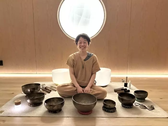 朝食後に、サウンドヒーリングを体験しました。シンギングボウル等を使い音の振動で体を整えるものですが、気の流れといったものに作用するのか、瞑想にも近い気持ちよさがありました。