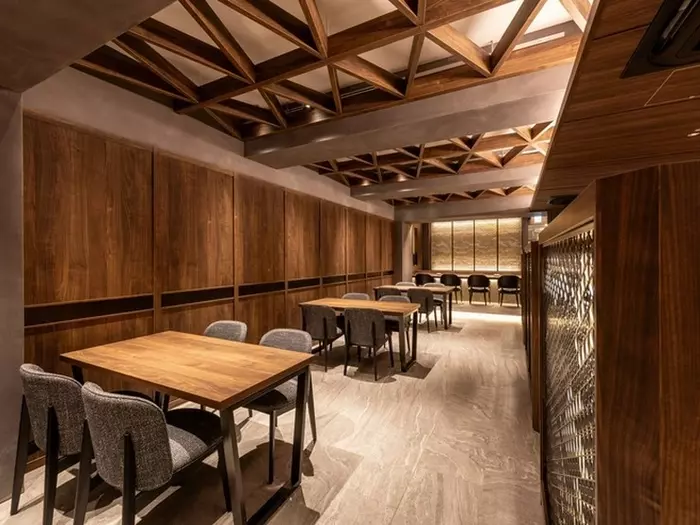 繊細な組子細工が目を引く高級感のある店内