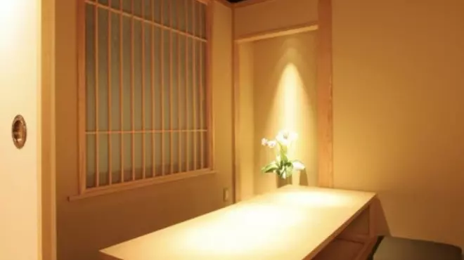店内は和の趣を感じる落ち着いた空間で、カウンター席やテーブル席に加え、2名の少人数から最大12名まで対応する個室を完備しています。掘りごたつ式やテーブルタイプなど複数の個室が用意されており、用途に応じて使い分けが可能。席数は34席で、周囲を気にせず食事ができるので歓迎会にもオススメ。