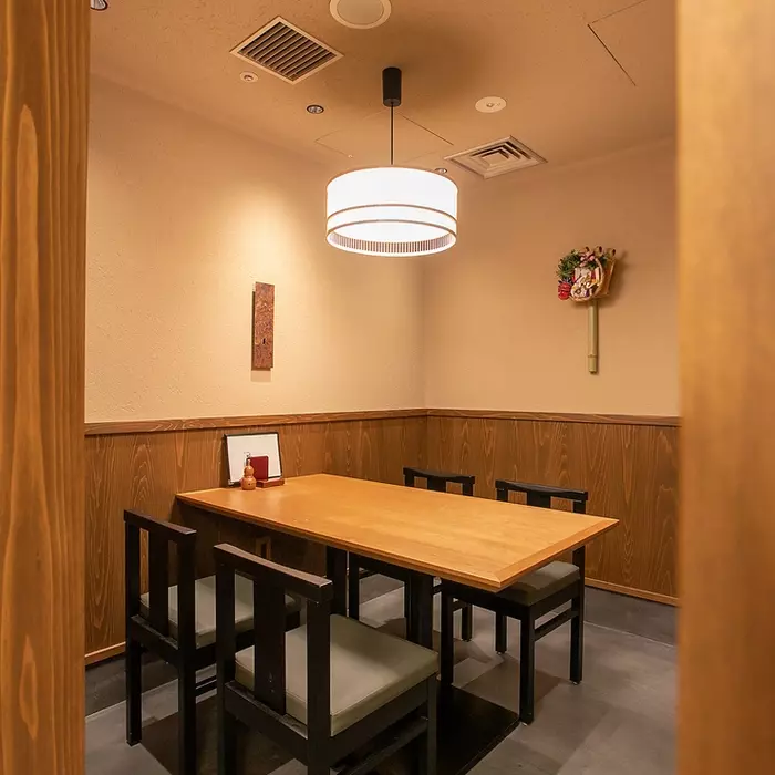六本木ヒルズ内に位置する落ち着いた店内は、テーブル席を中心に構成されています。4名まで利用できる半個室を備え、少人数で周囲を気にせず過ごせる環境が整っています。総席数は28席で、貸切利用にも対応可能。くつろげる雰囲気の中で、ゆっくり食事と会話を楽しめる一軒です。