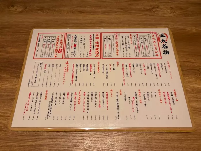 こちらの自慢は、100種類以上のフードと70種類以上のドリンクという圧巻の品揃え。特に「三大名物」と銘打たれた、ザンギ、煮込み、ミンチ串は、どれもお酒が進むように計算し尽くされた逸品ばかり