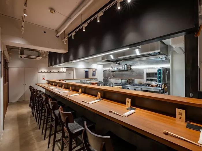 すっきりとモダンにまとめられた店内は、洗練されたカジュアルな雰囲気。肩肘張らずに食事が楽しめます。目の前で職人が寿司を握るカウンター席は、ライブ感たっぷりの特等席。大人のデートにオススメです。時季ごとにラインナップが変わる日本酒と寿司が奏でるハーモニーを楽しみながら、至福のひとときを過ごしましょう。