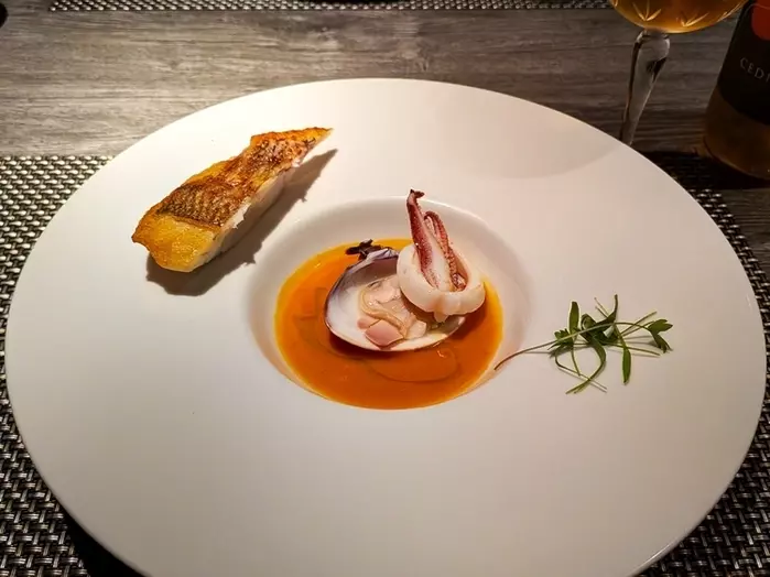真鯛のソテーやタコを使用した、ブイヤベース仕立ての一品