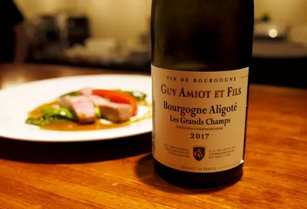 料理に合わせてオーダーしたいワインも、シェフがフランスワインの中からセレクトしてラインナップ。例えば、先ほどご紹介した『六白黒豚(ろっぱくくろぶた)肩ロース肉のロースト』にはブルゴーニュの『アリゴテ』がオススメだそう。コクがある白ワインで、豚の力強さに負けない味わいが魅力です。他にもリストには入っていないワインもそろえているとのことなので、ぜひ田中さんに相談してみてください。