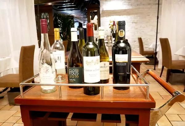 希少な銘柄が並ぶことも多い、日替りワインのワゴン