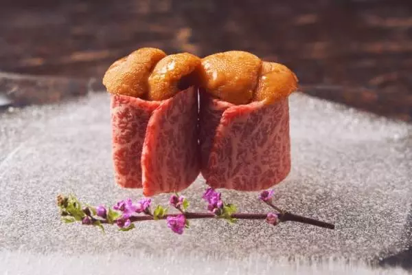 生ウニと肉の組み合わせが相性抜群な人気メニューの『うに牛』。醤油をつけてそのまま食べれば、ウニの甘味と肉の旨味が口の中で交じりあい、とろけます!