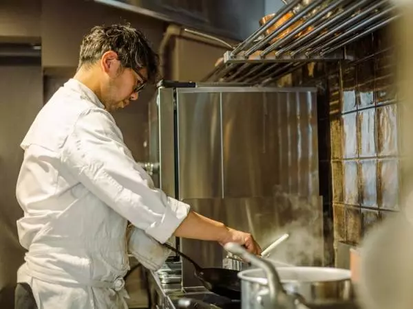 「九州へ入る前の山口県で『食事がおいしいと評判のユースホステルがある』と聞き、大雨のなかたどり着いて食べたハンバーグが、すごくおいしかったんです。悪天候のなかずっと自転車を走らせてきたこともあり、本当に幸せな気持ちになって……。その時に『料理人は、人を幸せにできる仕事なのかもしれない』と感じたのが、料理人を目指したきっかけです。食べる瞬間まで料理人という選択肢は全くなかったんですが、その後の九州一周はずっと料理のことばかり考えるようになって(笑)、『もう自分のやるべきことは決まったんだ、帰ろう』と東京に戻って、料理の道へ進みました」
