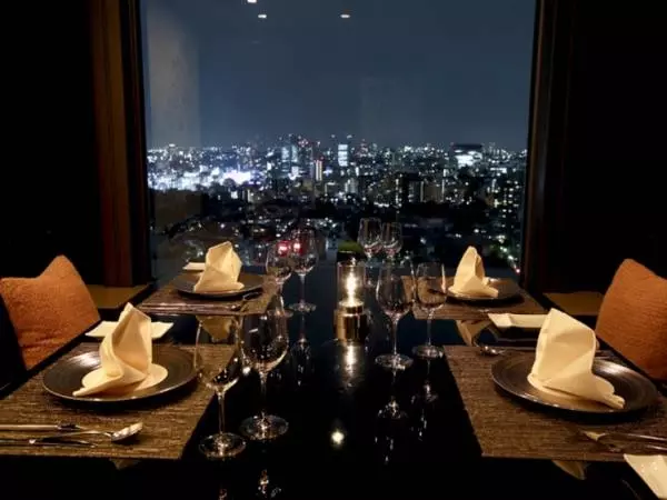 品川駅から徒歩3分、ホテル最上階という絶好のロケーションにあるダイニングバーです。湾岸の高層ビル群や白金の森などを望む広々としたフロアには、「バーカウンター」「メインダイニングフロア」「個室」を完備。個室の扉を開けた瞬間から目に飛び込んでくる、大開口の窓からの景色には思わずテンションが上がります。