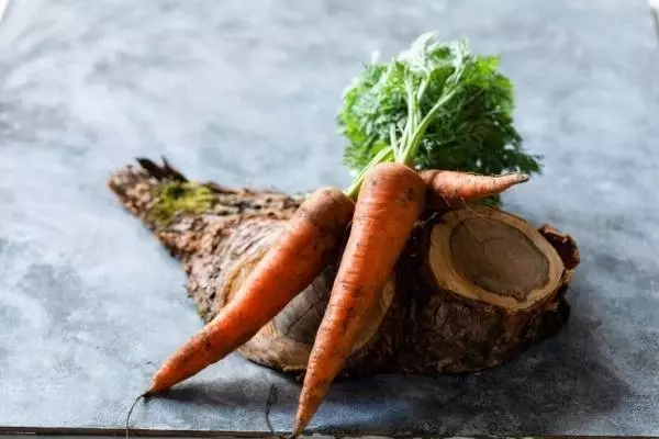 塩漬けしたニンジンを低温のオイルで柔らかくなるまで茹で、燻製し、乾燥。冷凍したのちローストして仕上げた「ニンジンのロースト」