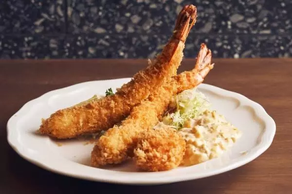 大きな海老がドカっと乗った人気メニュー『海老フライ』1,500円 税抜(ライス、スープ付き)