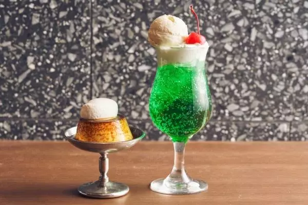 右から『THE・クリームソーダ』600円、『ととのうプリン』シングル/500円(ダブル/700円、ビッグ/1,000円すべて税抜)