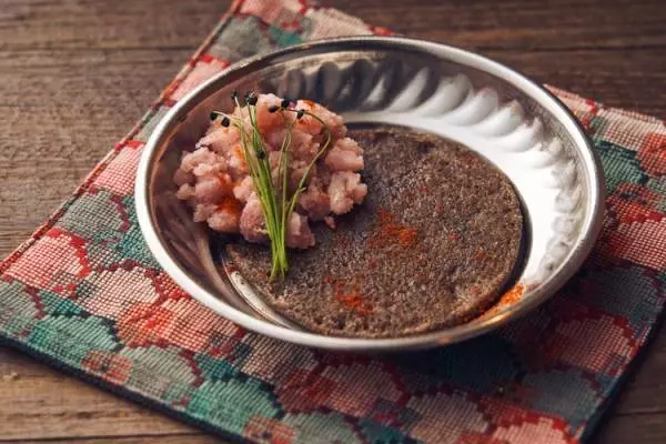 “カジャ”は主に白ごはん以外と食べるもののことを指す言葉で、同店ではネパールを俯瞰でみたカジャを用意。たとえば取材した月はネワール族スタイルで、別の月はシェルパ族、また別の月はポカラ地方など、前菜としてカジャを用意し、様々なアチャールとのペアリングで提供してくれる。