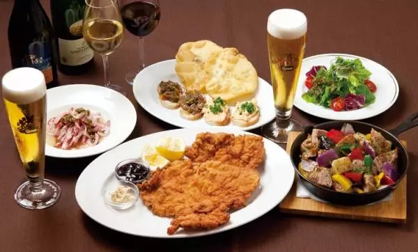 テラス席限定『飲み放題付ビアテラスコース<オーストリア樽生ビールも飲み放題>』5,400円は、ウィーン樽生ビール『ゲッサー』やオーストリア産ワインが飲み放題。青山の心地よい風を感じながら、本場オーストリア料理とお酒が堪能できます。