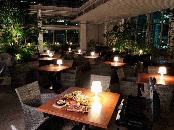 アークヒルズの屋上庭園に広がる、開放的なラウンジバー。緑豊かな庭園にゆったりとしたソファ席が設置された“大人な雰囲気”のビアガーデンです。