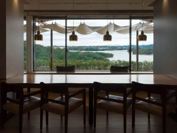 魅力的な食材を育む地域にある「志摩観光ホテル」の外には広大な自然が広がります。青々とした英虞湾(あごわん)と生い茂る森。そんな絶景を眺めながらゲストラウンジでくつろいだり、約2,000坪の庭園を時を忘れてゆったりとお散歩したりと、その空間にいるだけで十分しあわせなひとときを過ごせます。